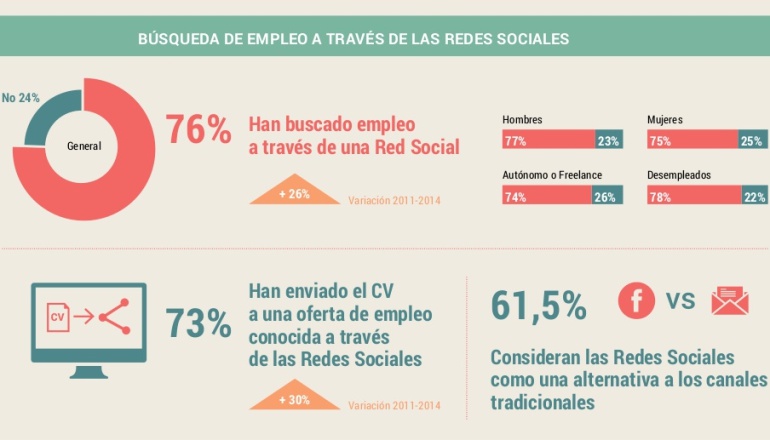 ... Adecco e infoempleo destaca que un 76% de los usuarios, un 26% más que en 2011, reconoce haber buscado empleo a través de las redes sociales